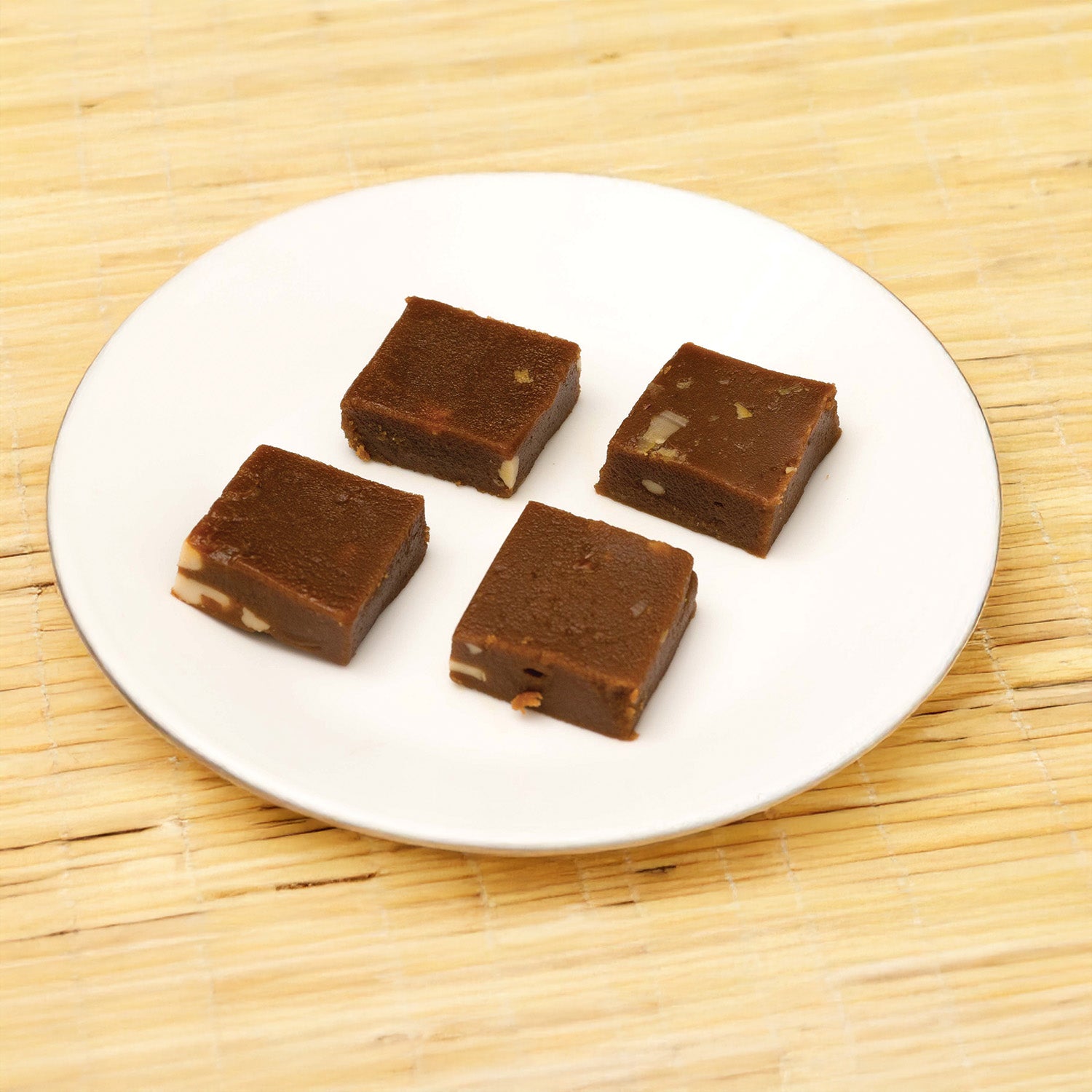 Boost Burfi is a chocolaty twist on the classic sweet, made with milk solids and Boost malt powder for a rich flavor.