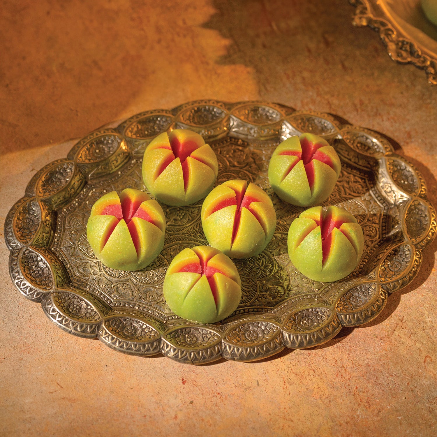 Kaju Pua is a soft, rich sweet made from cashew paste and sugar, often shaped into delicate, bite-sized pieces.