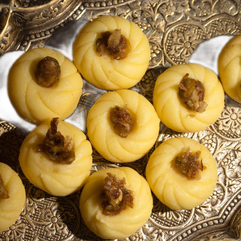 Milk Kotori is a soft, bite-sized sweet made from khoya (thickened milk) and sugar, often flavored with cardamom.