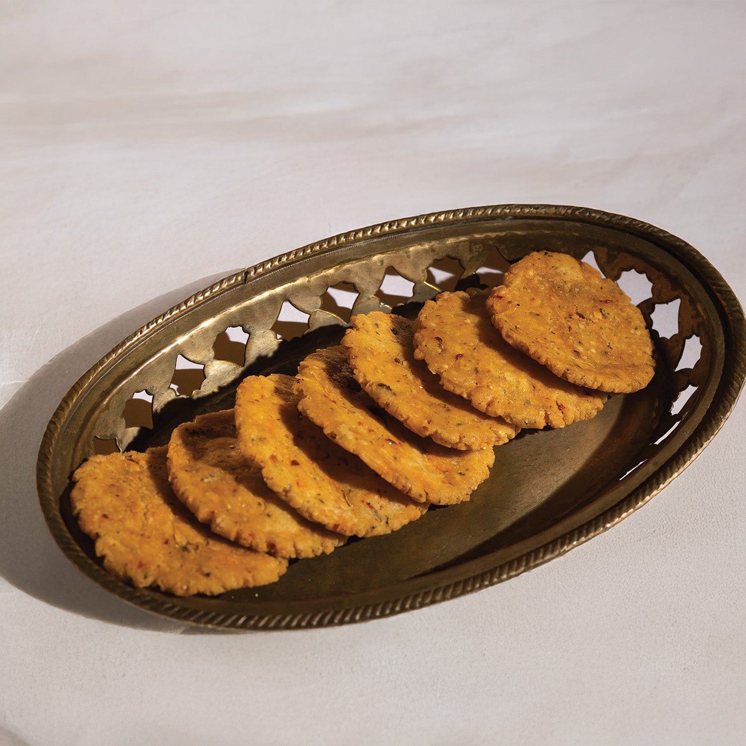 Crunchy, savory, and lightly spiced, itโs a popular tea-time or festive snack.